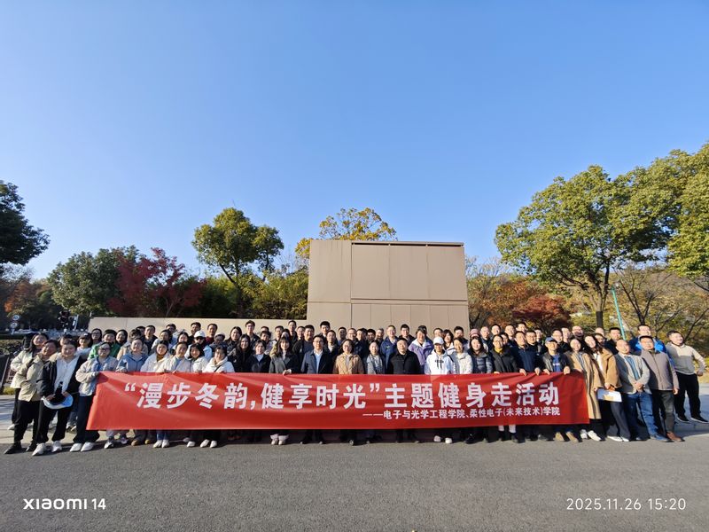 為迎接學院黨代會勝利召開,讓全體教職工在自然中放松身心、在運動中凝聚力量,11月26日下午,電子與光學工程學院、柔性電子(未來技術)學院工會精心策劃“漫步冬韻,健享時光”主題健身走活動,組織全院教師走進羊山公園,共赴一場冬日美景與健康活力的雙向之約。下午三點,參與活動的教師們齊聚公園入口廣場,臉上洋溢著期待與喜悅。學院黨委書記黃麗亞致辭,她表示,此次健身走活動既是響應“全民健身”號召、關愛教職工身心健康的暖心舉措,也是學院以團結奮進風貌迎接黨代會的生動實踐?!跋M蠹以诼街行蕾p冬景、在同行中增進情誼,把運動帶來的活力與激情,轉化為教書育人、干事創業的強大動力,共同為學院高質量發展蓄力賦能。”致辭結束后,教師們邁著矯健的步伐有序啟程,沿著蜿蜒的環湖步道展開了一場與冬日的親密邂逅?;顒咏Y束后,教師們在公園入口處集體合影。此次健身走活動全程約5公里,路程雖不算長,卻讓老師們在繁忙的工作之余,走出了校園、走進了自然,既鍛煉了身體、舒緩了壓力,更增進了彼此間的溝通與情誼。電子與光學工程學院、柔性電子(未來技術)學院工會未來將繼續聚焦教職工需求,秉持“服務教職工、凝聚向心力”的宗旨,組織更多形式